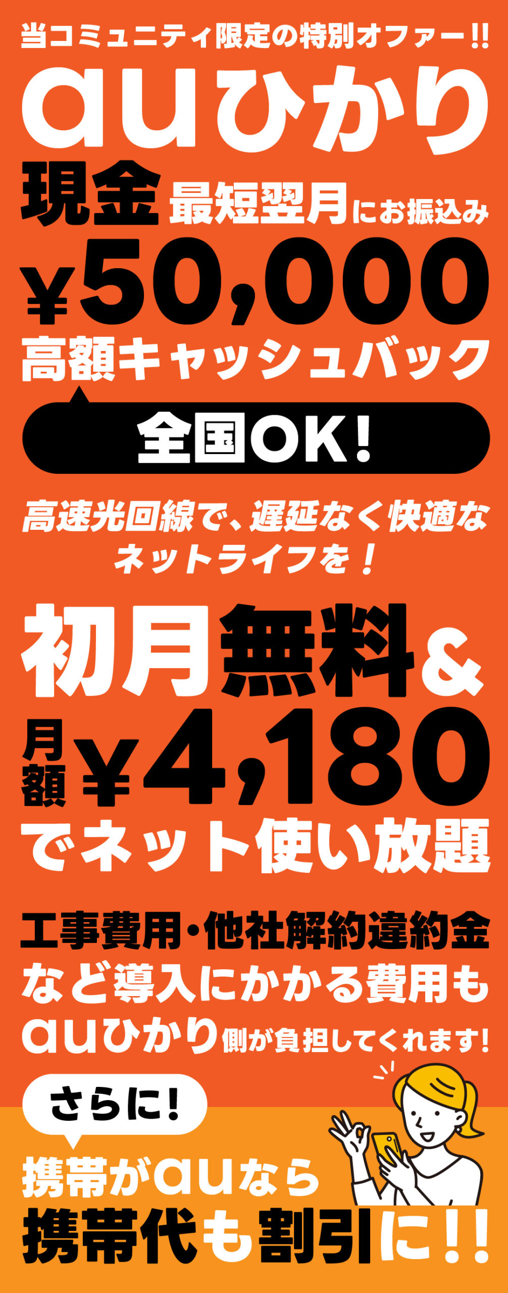 さらに!お手持ちの携帯回線がauであれば、そちらの料金も割引に!!