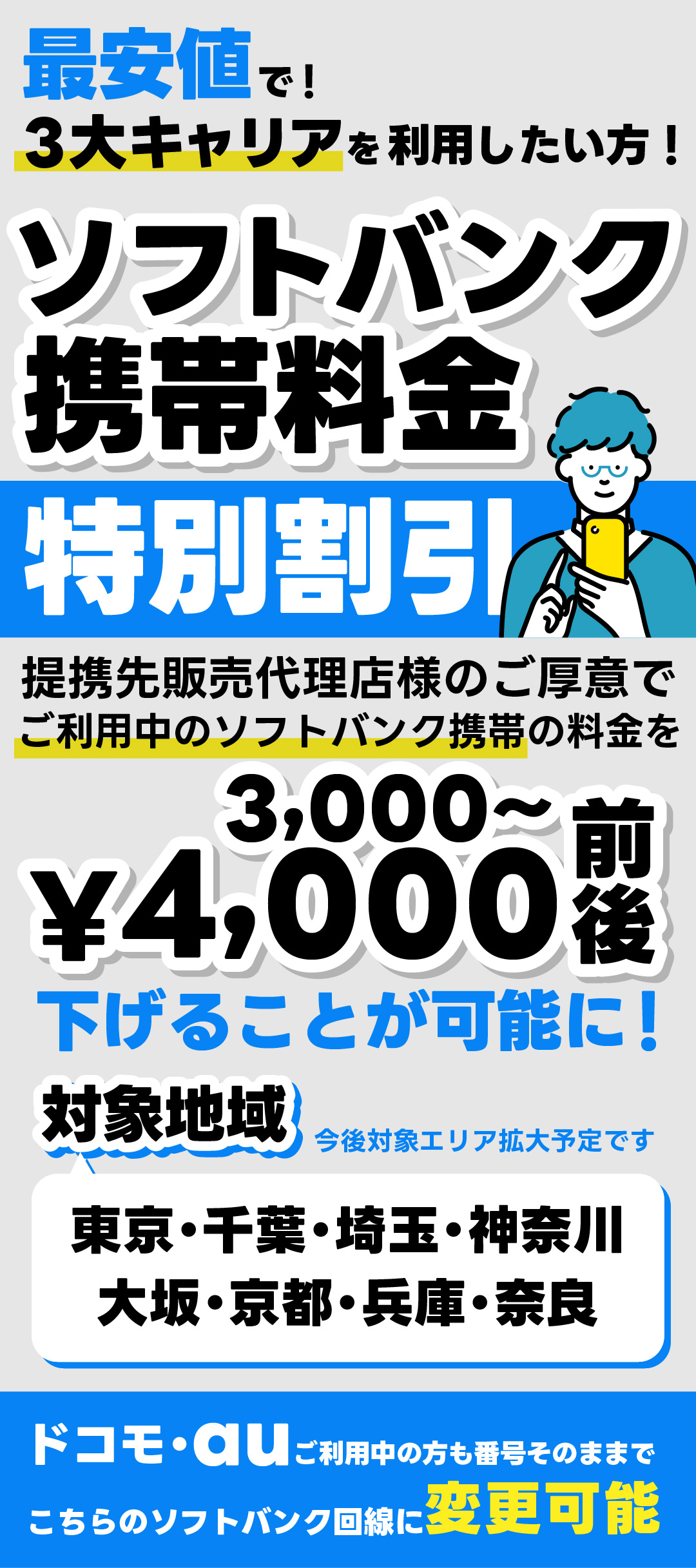 3大キャリアの安定した電波で、通信費を節約したい方に!
