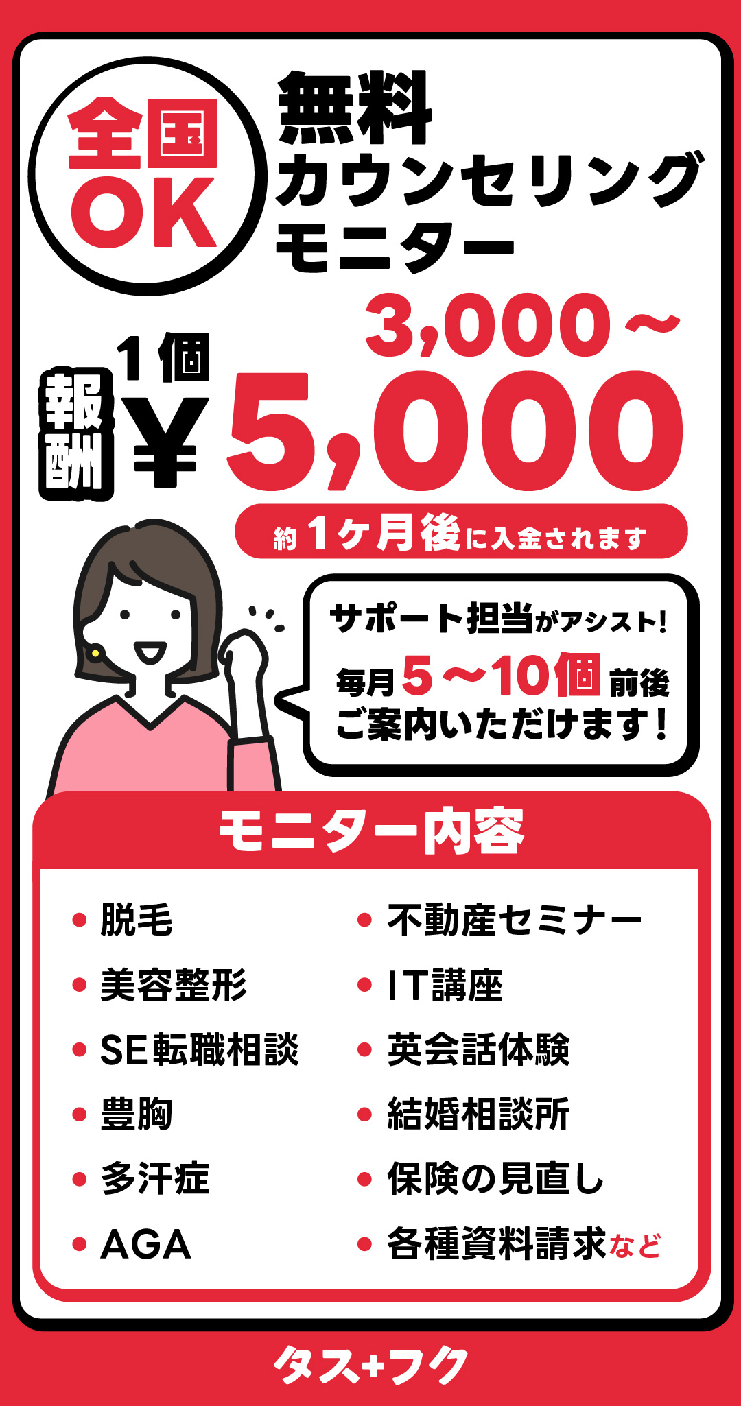 見込み客として判断されなかった場合でも最低2,000円を保証しています!