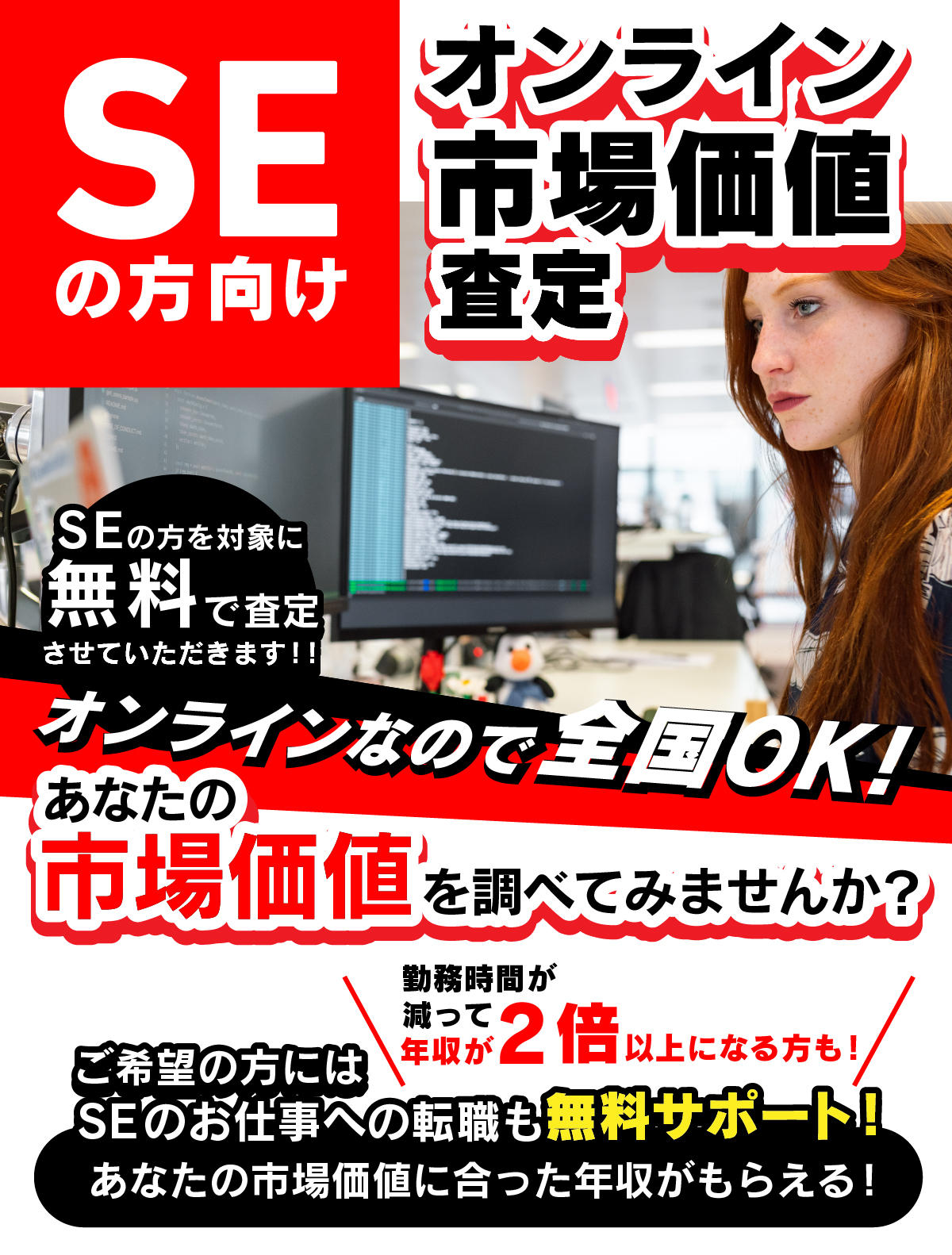全国基準での市場価値査定! 転職も無料サポートいたします!