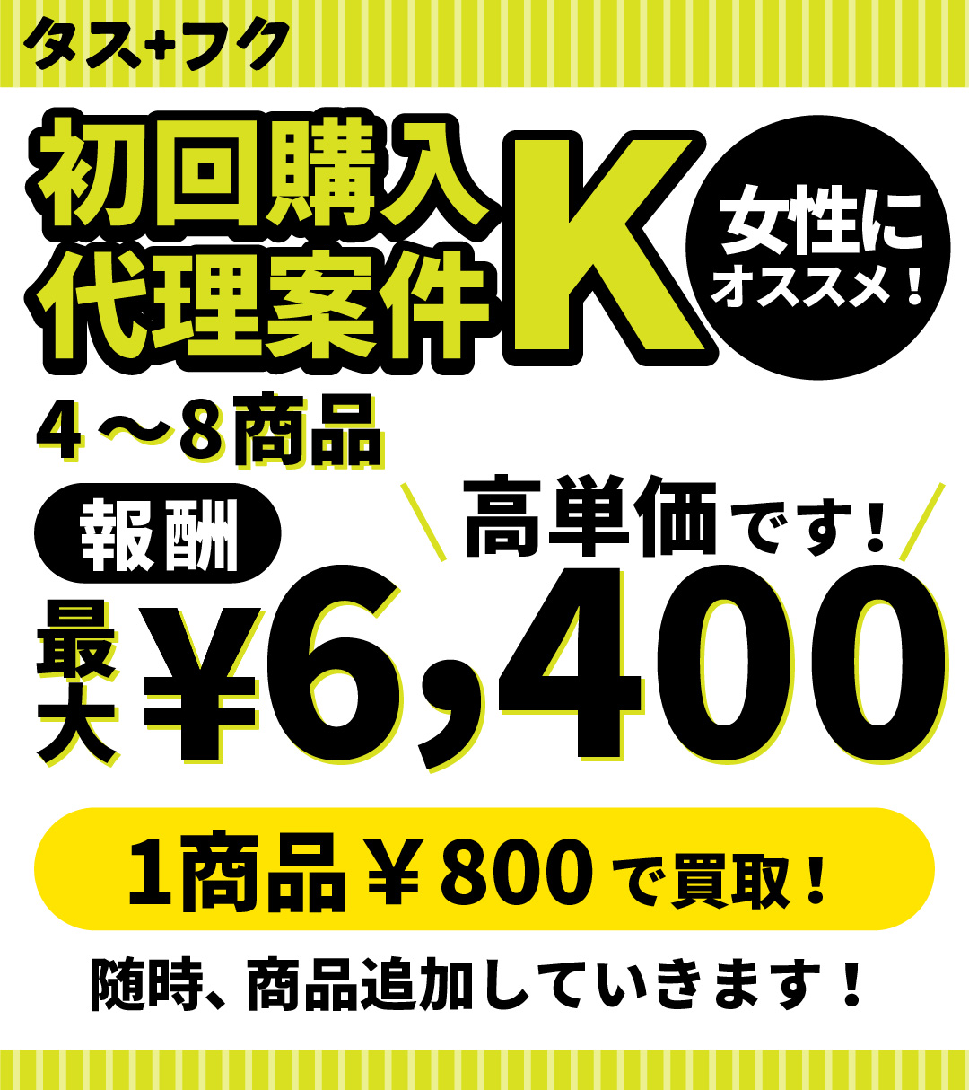 初回購入Kは女性向けの商品が多いので、女性には特に取り組みやすいお仕事になっています。
